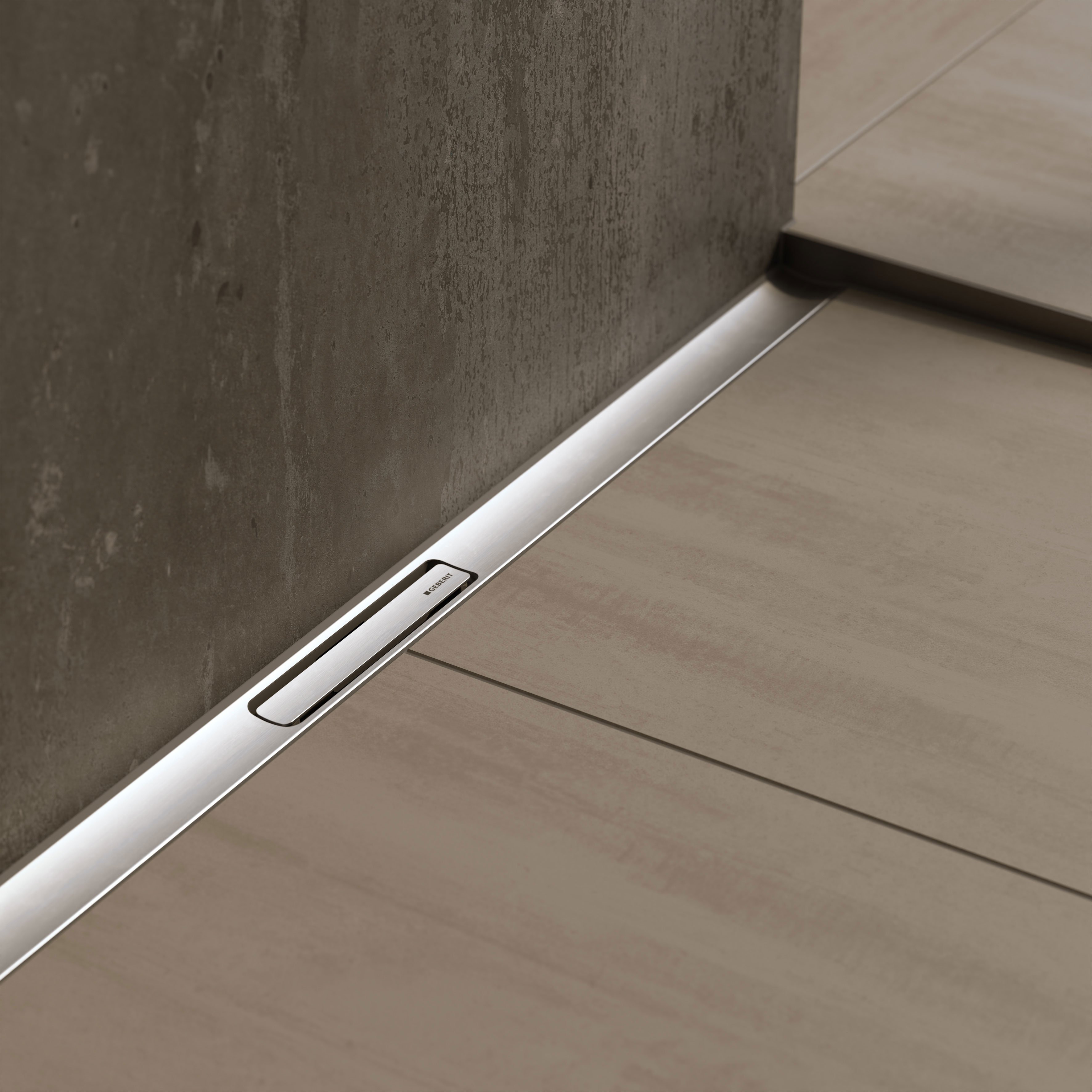 Die Geberit CleanLine30 Duschrinne lässt sich bündig an der Wand montieren.
